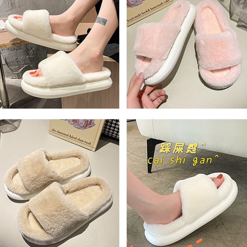 Thick Fluffy Fur Slippers Latest New Women Winter House Warm Furry Slippers Women Flip Flops Home Slides Flat Indoor Floor Shoes